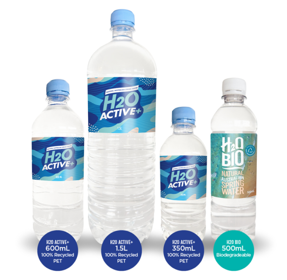 Our H2O BIO bottles are made from 100% recycled plastic and designed to biodegrade in landfill – the logical choice for your bottled water. Premium natural spring water deserves premium eco-friendly packaging.